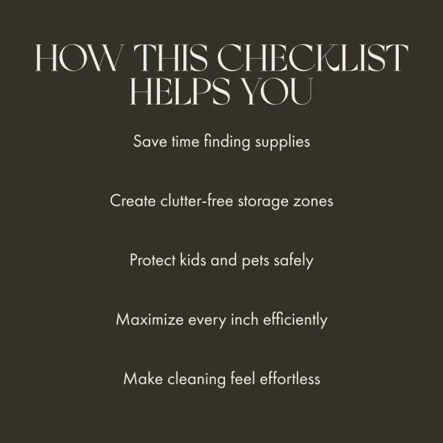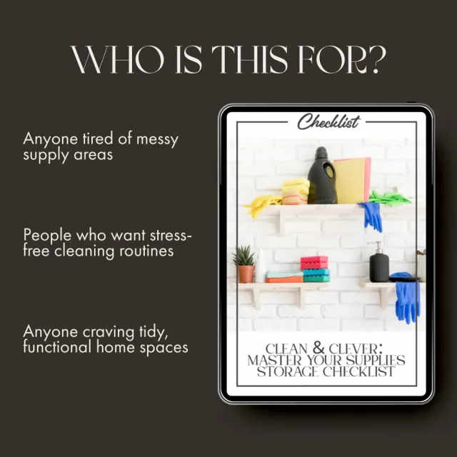 Download Clean & Clever: Master Your Supplies Storage Checklist now and discover the best ways to store cleaning supplies efficiently. Create a clutter-free, easy-to-use storage system you’ll actually enjoy maintaining. Make cleaning feel lighter, faster, and a little more fun—starting today!