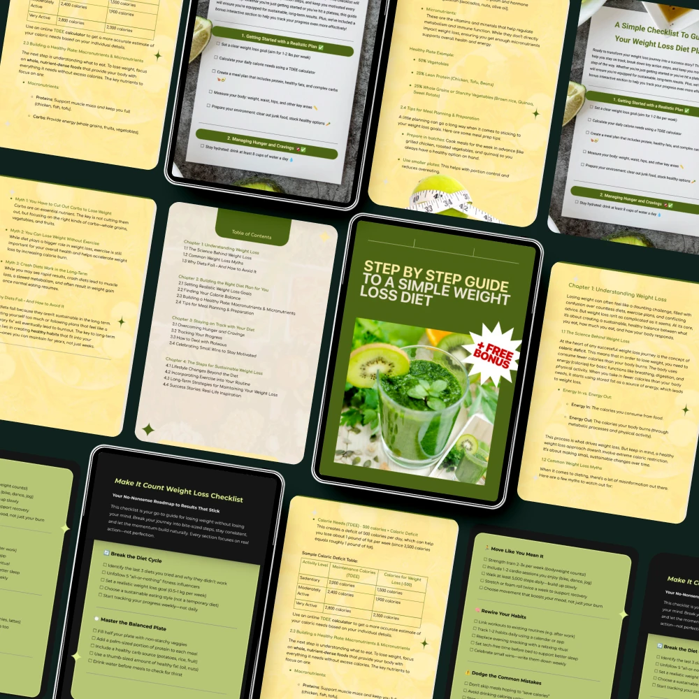 Unlike other weight loss guides that overwhelm you with jargon or complicated plans, this bundle simplifies the process with easy-to-understand steps. Each component is crafted to support your journey with actionable advice and real strategies, helping you make clean eating a sustainable part of your life.