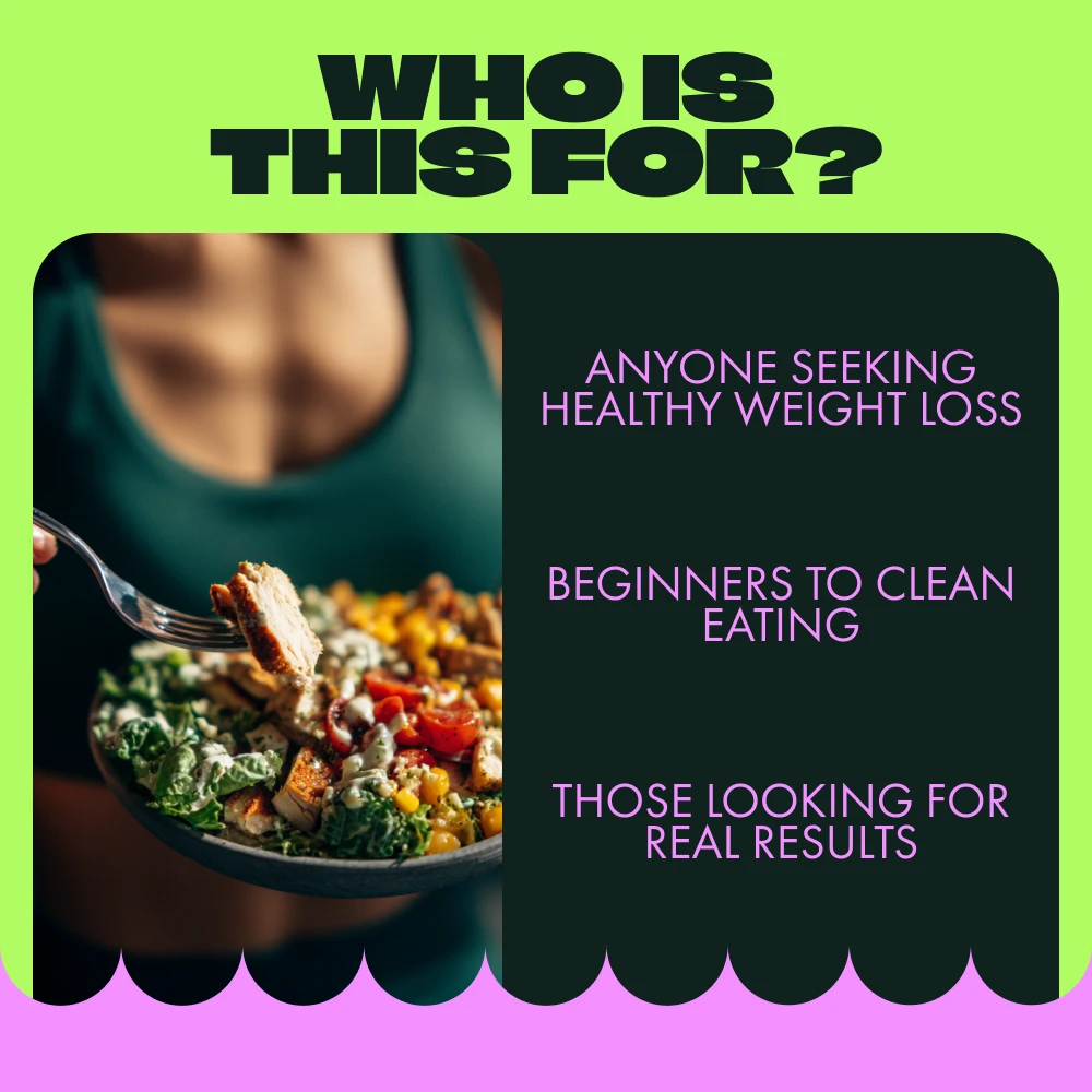 This Clean Eating Weight Loss Bundle is for anyone who is serious about achieving healthy weight loss and making lasting changes to their lifestyle. Whether you’re a beginner looking for a clear plan or someone who has struggled in the past, this bundle offers all the tools you need to stay focused and motivated. It’s designed for those who want to embrace clean eating, without complicated diets or unrealistic expectations.