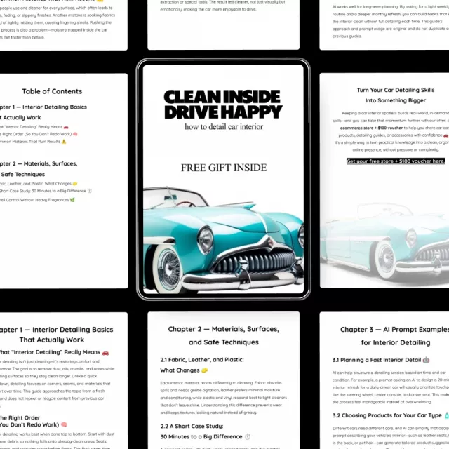 If you're new to interior detailing, get this guide now! It's beginner-friendly and even includes AI prompt examples for planning your routine - cool stuff!