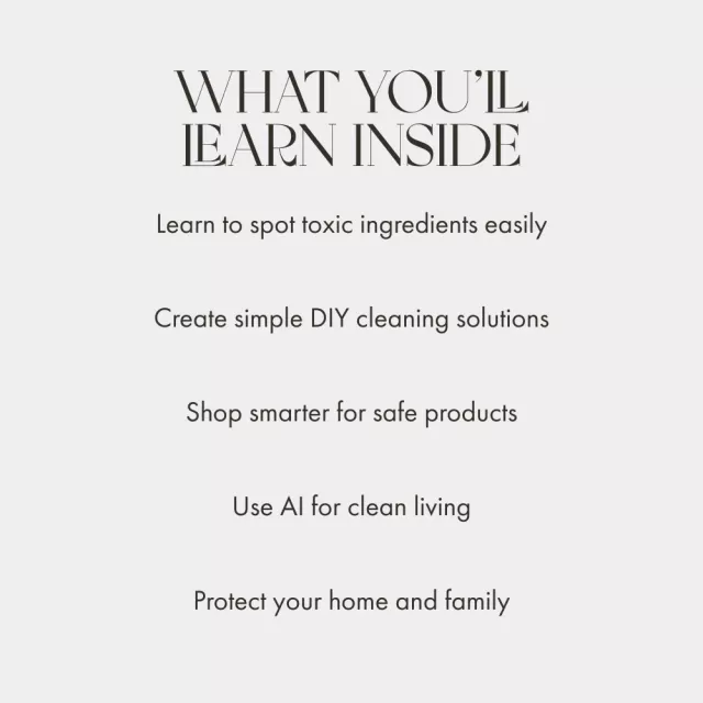Transform your cleaning routine with Clean Smart — the ultimate digital guide for anyone who wants a fresher, healthier, and toxin-free home. This downloadable eBook reveals how to identify safe ingredients, make your own non-toxic cleaning solutions, and even use AI tools to find the cleanest products on the market. Whether you’re new to eco-friendly cleaning or already passionate about green living, this guide helps you clean smarter, not harder — and with complete peace of mind.