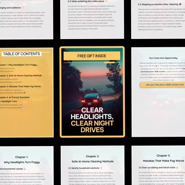 • Chapter 4: AI Prompt Examples for Headlight Care – Get personalized cleaning advice and simple maintenance planning prompts.