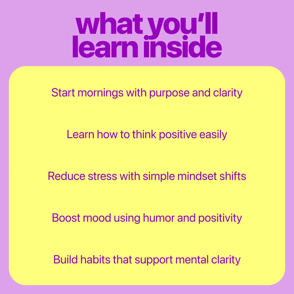 If you want a simple and practical way to think more positively, this is for you. The checklist is so easy to follow, and the morning routine guide gives me the motivation I need to get started on the right foot.