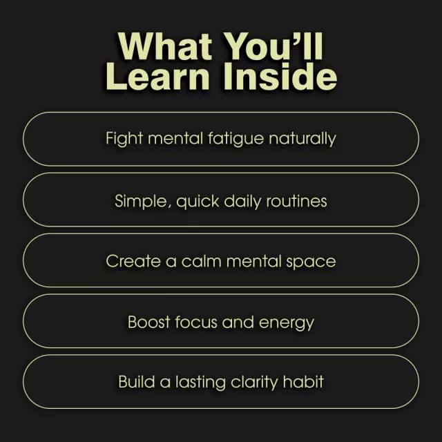 This comprehensive digital guide is packed with actionable, easy-to-follow content designed to deliver real results. You receive an instant PDF download, so you can start your journey to mental clarity within minutes.