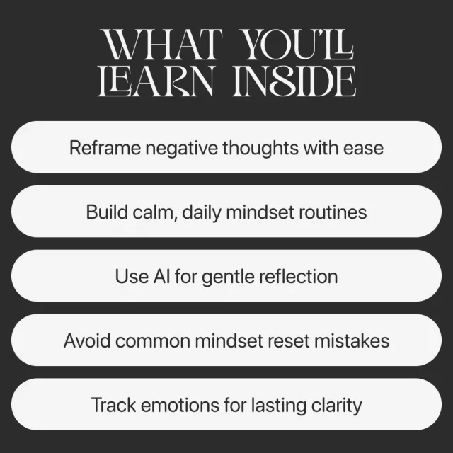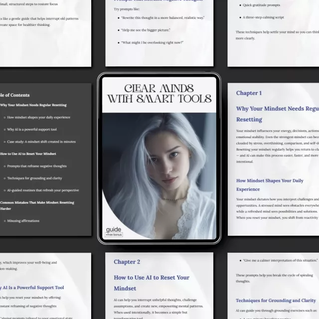 Clear Minds With Smart Tools combines neuroscience-backed mindset principles with cutting-edge AI techniques, helping you achieve calm in a way that feels effortless. It doesn’t just tell you to “think positive”—it gives you structured ways to use AI to reset your mindset so that clarity becomes part of your everyday life.