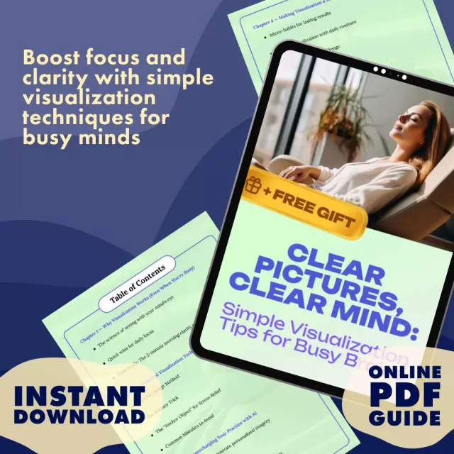 Ready to clear your mind and boost your productivity with Simple Visualization Tips for Busy Minds? Download this practical guide now and start experiencing the benefits of visualization—anytime, anywhere. Empower yourself to stay focused, reduce stress, and achieve clarity in your daily life.