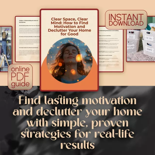 Feeling overwhelmed by mess and mentally stuck in the clutter? You’re not alone—and you’re not without help. Clear Space, Clear Mind: How to Find Motivation and Declutter Your Home for Good is your step-by-step digital guide designed to help you clear your home and your head. This motivational, easy-to-follow resource is more than just a decluttering checklist. It’s a mindset shift, a lifestyle transformation, and a supportive tool created to help you break free from chaos and step into clarity. If you’ve been searching for how to get motivated to declutter your house, this guide is made for you.