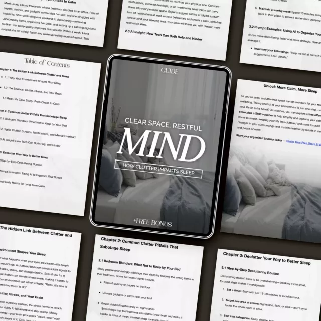 Transform your space, transform your sleep. Download Clear Space, Restful Mind: How Clutter Impacts Sleep today and start discovering how clutter affects sleep—and how clearing it can bring calm, clarity, and true rest back into your life.