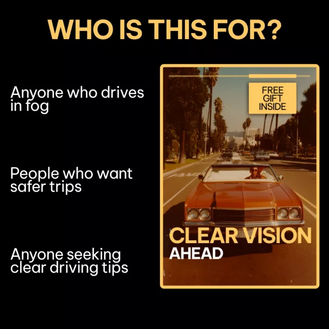This ebook is ideal for everyday drivers, commuters, new drivers, rideshare drivers, and anyone who regularly travels in fog-prone areas. It’s also valuable for safety-conscious families and professionals who want clear, actionable guidance without technical jargon.