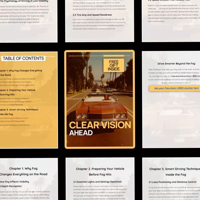 Driving through fog can feel disorienting, stressful, and unpredictable. Clear Vision Ahead was created to help drivers regain control and confidence when visibility disappears and every decision matters. This expertly written ebook turns complex safety principles into clear, practical guidance you can apply immediately. Whether you face coastal fog, morning mist, or sudden highway whiteouts, this fog driving safety guide helps you understand what’s happening on the road and how to respond calmly, correctly, and safely.