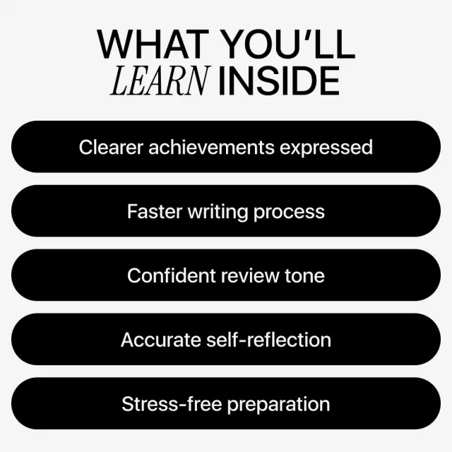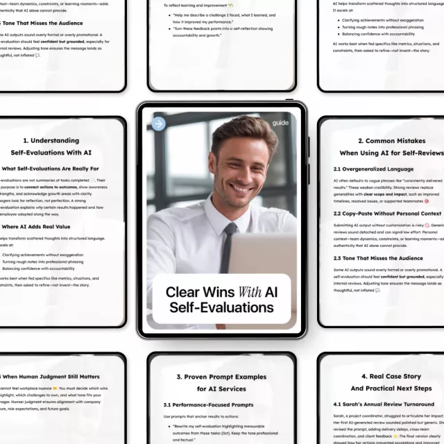 This resource is perfect for employees, managers, freelancers, and team leaders who want to write clear, thoughtful, and results-driven self-evaluations—especially those who want to use AI effectively without sounding robotic.