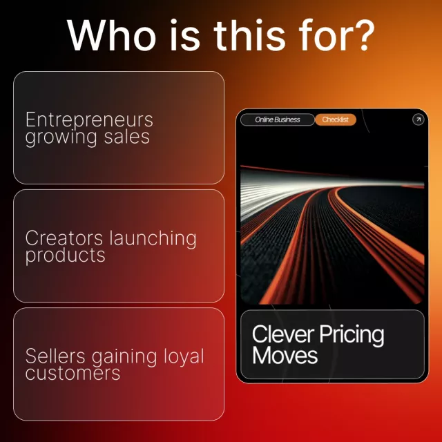 Clever Pricing Moves is your step-by-step checklist for mastering buyer-friendly pricing ideas that boost conversions without slashing profits. Whether you sell digital products, services, or physical goods, this guide helps you price with confidence, appeal to buyer psychology, and make your offers irresistible. Inside, you’ll learn proven techniques to anchor value, build trust, and create win-win pricing structures that feel fair to your customers and profitable to you.