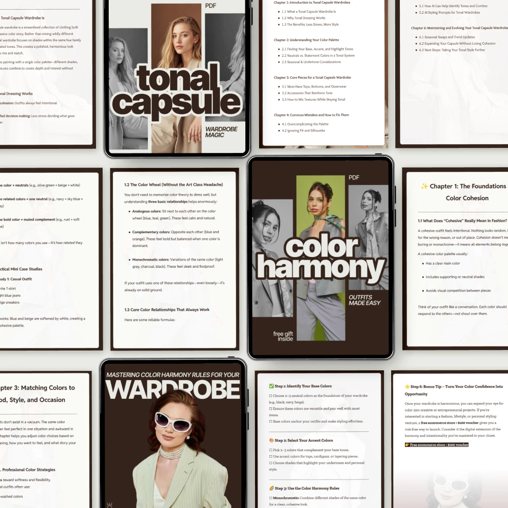 This bundle is perfect for minimalist wardrobes like mine. The tonal capsule magic guide helped me create versatile looks from a limited number of pieces. Makes everything feel larger and more intentional!