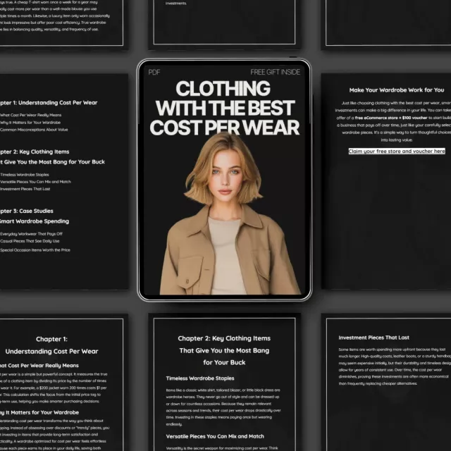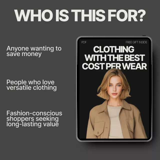 If you’re tired of buying clothes that end up sitting in your closet or feeling guilty about splurging on trendy pieces, this eBook is exactly what you need. “Clothing with the Best Cost Per Wear” is your ultimate guide to building a smarter, more sustainable wardrobe that not only saves you money but also keeps you looking stylish every day. Packed with expert tips, practical advice, and AI-powered wardrobe planning strategies, this guide helps you choose clothing items that offer the best cost per wear—meaning you’ll get the most out of every item in your closet.