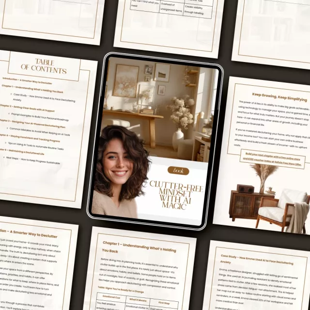 Ready to simplify your life? Download Clutter-Free Mindset with AI Magic today and start learning how to use ai to create a decluttering plan that truly works for you. Embrace calm, clarity, and confidence—powered by AI.