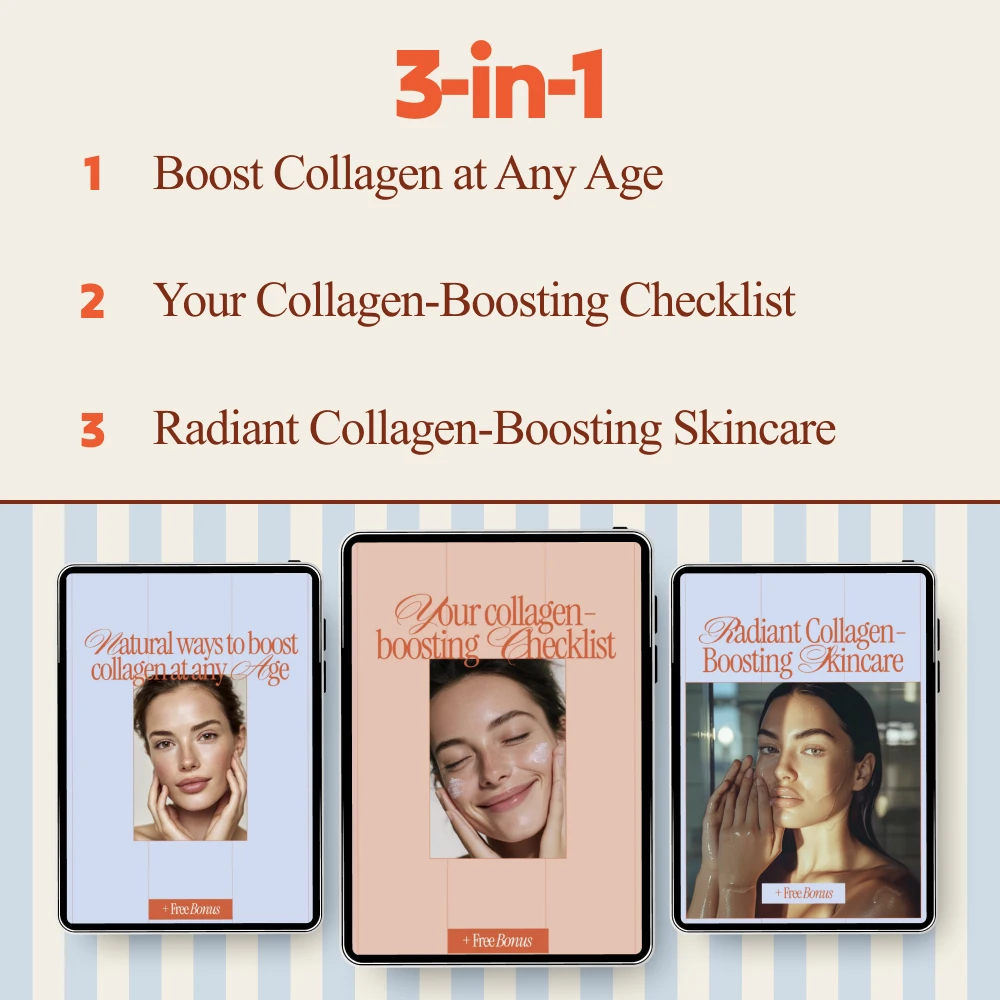 Start supporting your glow today. Download the Collagen Boosting Tips Bundle now and enjoy instant access to all four resources. If you’re ready for simple, sustainable collagen boosting tips that fit your lifestyle, this bundle was made for you.