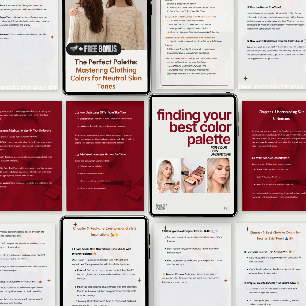 Ever wondered how to find the best colors for your skin tone? This digital bundle has you covered. It's like having a personal stylist in your pocket, helping you build a wardrobe that truly flatters your skin.