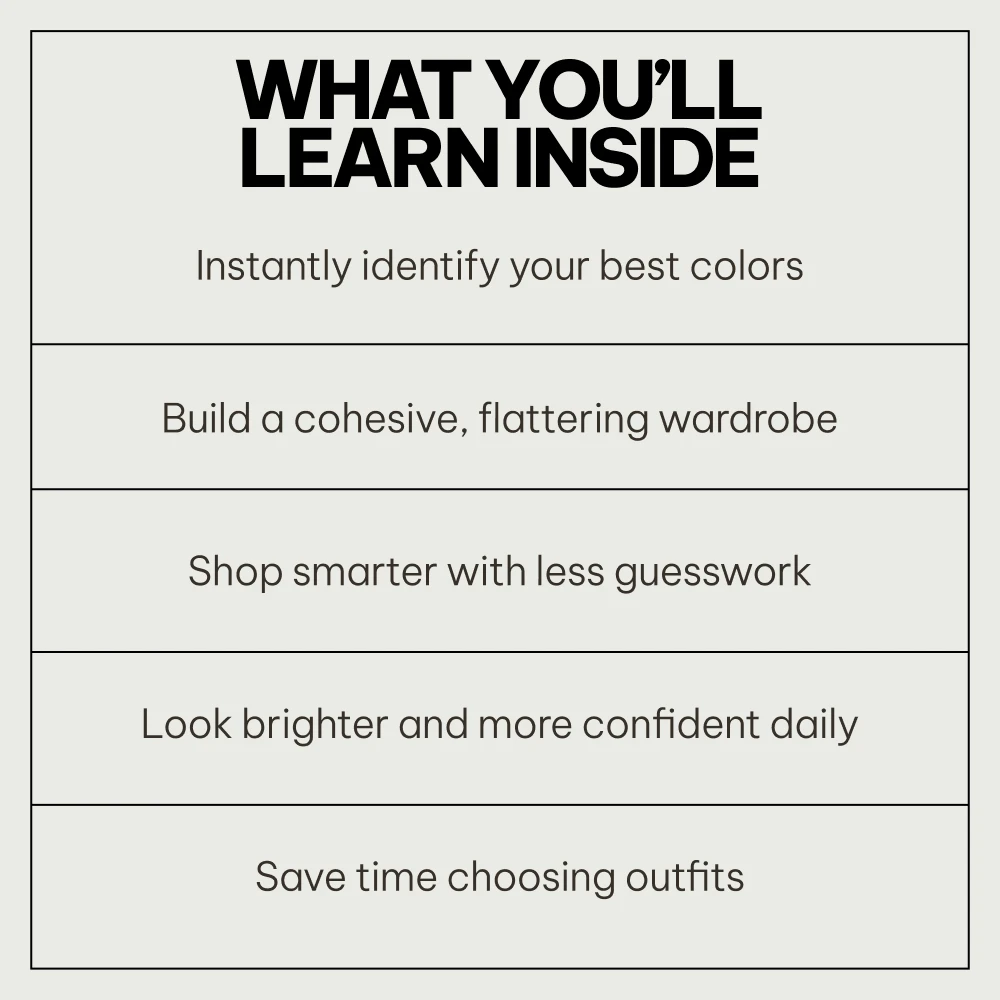 What sets this apart from other color guides is its practicality: broken down by undertones, modern design, and instantly downloadable. A must-have if you want to dress with confidence every day.