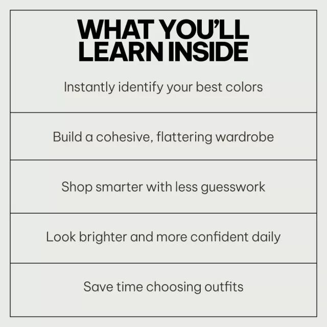 Ever wondered how to match clothing colors with your skin tone? This bundle makes it so simple! I've saved time and money by only buying clothes that truly flatter my skin. Instant style upgrade indeed!
