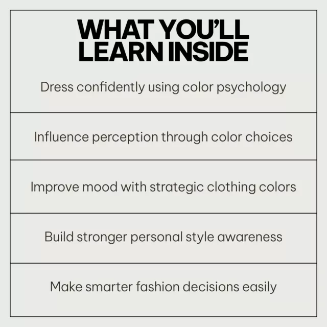The insights on using colors strategically have transformed both my personal style and professional success. Highly recommended if you want to dress with purpose!