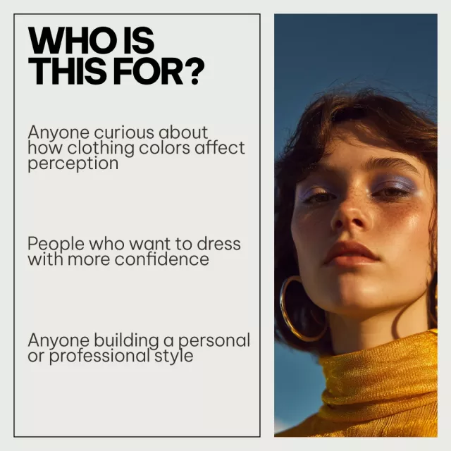 Unlike generic color guides, this system connects internal mindset with external perception. It doesn’t just tell you what colors mean—it shows you how color affects perception in fashion in real-life scenarios. The content is structured, easy to understand, and designed for immediate application, whether you’re dressing yourself, styling clients, or building a fashion-related brand.