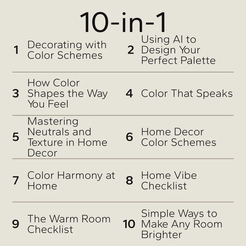 Are you ready to create a home that feels harmonious, inviting, and totally you? The Color Scheme System for a Put-Together Home bundle is your ultimate digital toolkit to mastering the art of color in interior design. Packed with 10 comprehensive guides, eBooks, and checklists, this bundle will help you navigate the world of home decor color schemes with ease, no matter your style or experience level. Whether you’re decorating with a bold, vibrant palette or creating serene, neutral spaces, you’ll find the tools and inspiration you need to design the perfect look for every room.