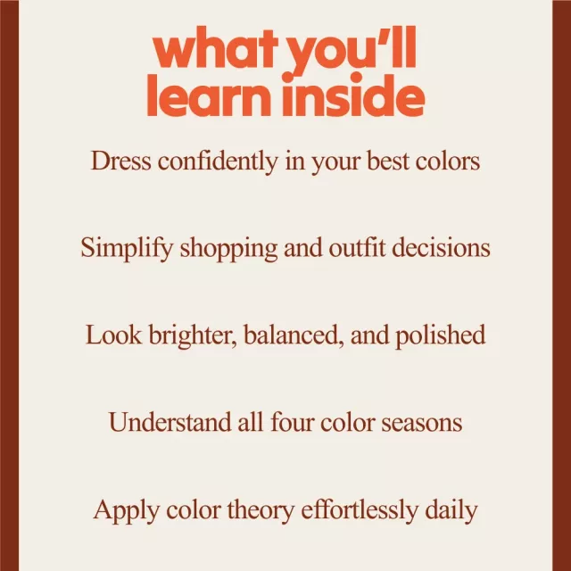 This bundle is perfect for fashion lovers, personal styling clients, creatives, and anyone curious about color theory seasons and seasonal color analysis. Whether you’re brand new or already familiar with the concept, these resources meet you where you are and guide you step by step.