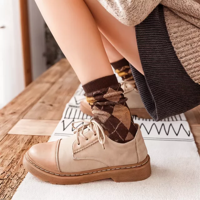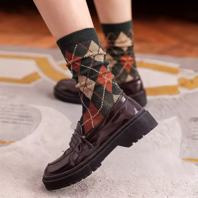 These socks combine essential everyday comfort with fun, youthful style. Featuring classic plaid and rhombus designs in two-tone color combinations, each pair brings a touch of flair that works effortlessly with both casual and cozy outfits. Their standard thickness makes them ideal for winter wear, helping keep your feet comfortably warm without feeling bulky in your shoes.
