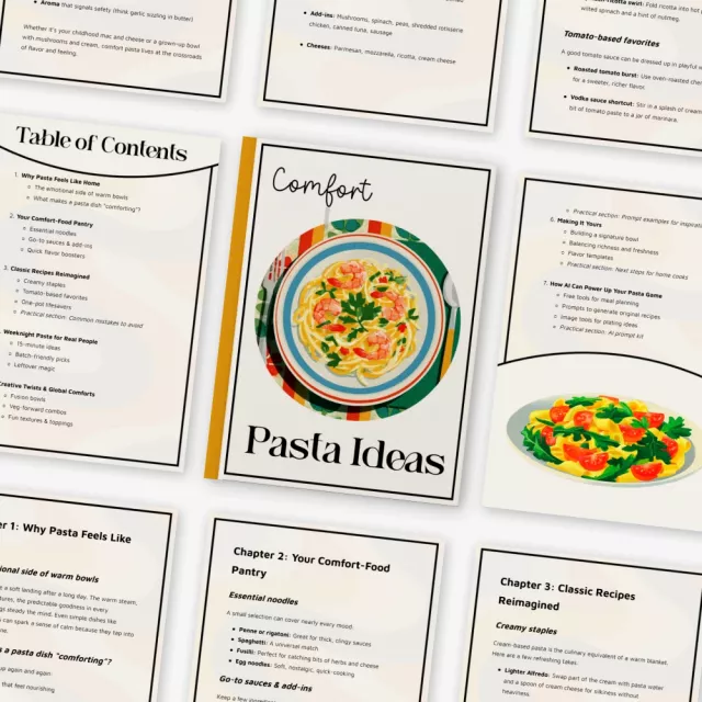 Unlike generic recipe collections, Comfort Pasta Ideas blends culinary comfort with emotional insight and practical, AI-powered inspiration. It helps you not only follow recipes but understand how to build your own comforting bowl every time.