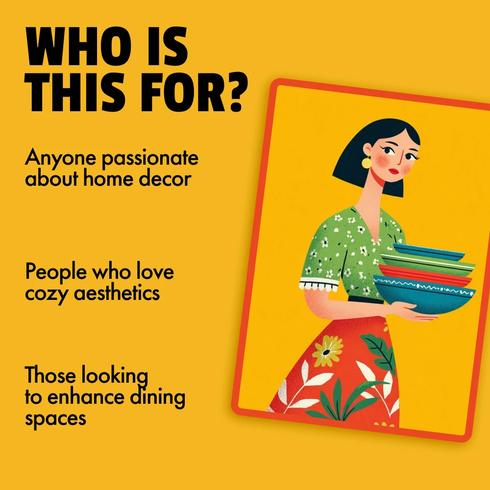 This toolkit is perfect for anyone who wants to add a bit of comfortcore style to their home. If you love cozy, nostalgic, and nature-inspired aesthetics, this digital bundle will help you create a table that reflects your personal style. It’s also ideal for interior design enthusiasts, beginner decorators, and those looking for creative ways to enhance their dining space. If you want to learn how to style a comfortcore dining table, this bundle is made for you!