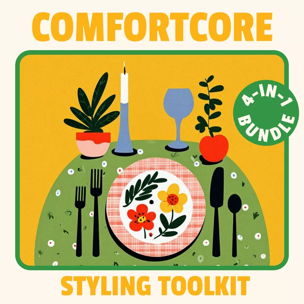 Bring warmth, charm, and personality to your dining space with the Comfortcore Styling Toolkit. This carefully curated bundle of digital downloads includes everything you need to style your table with cozy, inviting vibes. Whether you’re hosting an intimate dinner or simply want to add a touch of comfortcore to your daily meals, this toolkit will guide you through creating a comforting and stylish setting. With the right tips, checklists, and inspiration, your dining table will feel like the heart of your home.
