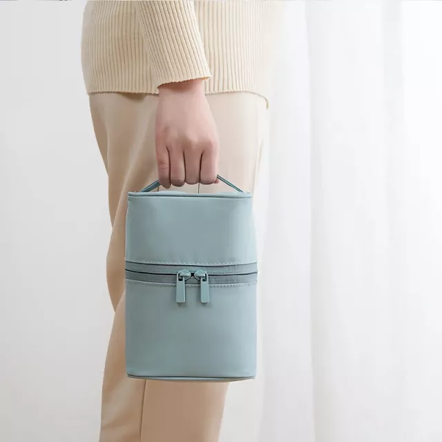 Keep your cosmetics neat, secure, and easy to access with this compact cylindrical travel makeup organizer bag. Designed to combine style with function, this bucket-shaped makeup case is perfect for home use and on-the-go adventures. Crafted from durable nylon and eco-friendly canvas materials, it offers a lightweight yet sturdy storage option that fits effortlessly into your travel routine.