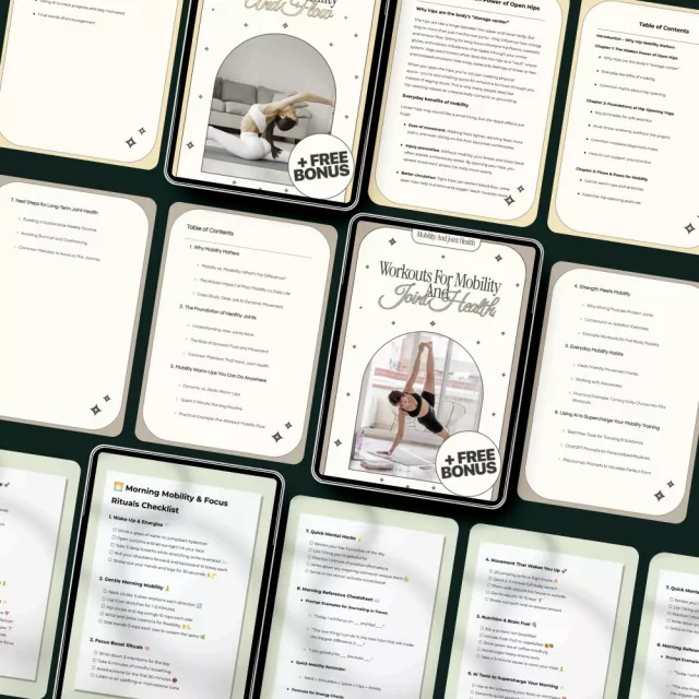 Ready to experience the benefits of a flexible, pain-free body? Don’t wait another day—download your Complete Mobility Workout Toolkit for a Flexible, Pain-Free Life now and start moving with ease! Whether you’re just beginning or looking to take your mobility routine to the next level, this bundle will help you achieve your goals faster and with lasting results. Click below to get started!
