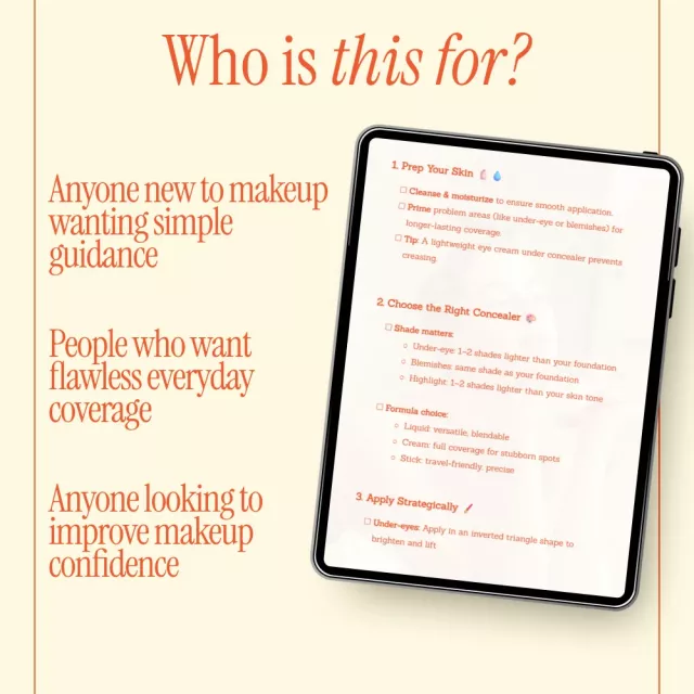 Upgrade your makeup skills in minutes with this instant digital download. Add Concealer Magic Step-by-Step to your beauty toolkit today and enjoy smoother, brighter, more confident skin—every single time you apply concealer.