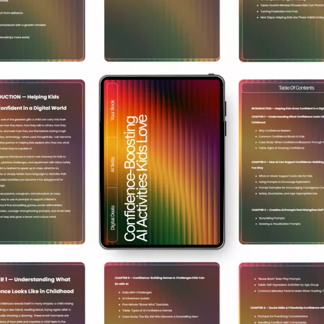 Help your child shine with Confidence-Boosting AI Activities Kids Love—a playful, practical digital guide designed to build courage, creativity, and communication skills in a modern world. This easy-to-use eBook shows parents and educators how to harness kid-friendly AI tools to strengthen confidence through storytelling, games, social prompts, growth-mindset activities, and more. If you want a screen-time resource that’s not only safe but genuinely developmental, this guide is your new go-to.