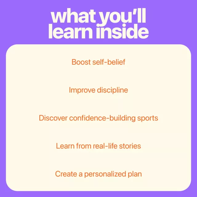 Unlike other confidence-building resources, this eBook is not just a generic guide. It’s a practical and hands-on approach that helps you understand the connection between movement, the body, and confidence. With a variety of sports options, expert insights, and actionable steps, this guide provides you with a well-rounded toolkit for developing self-belief, inner strength, and a mindset of success.