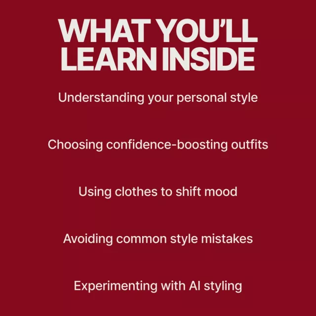 Unlike generic fashion guides, this ebook blends mindset, psychology, and modern AI tools to help you create confidence from the inside out. It is not about rules or trends. It is about learning how to feel confident in what i wear in a way that feels natural, personal, and sustainable.