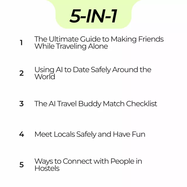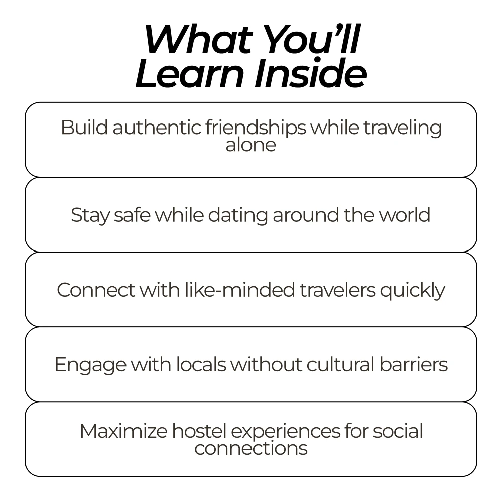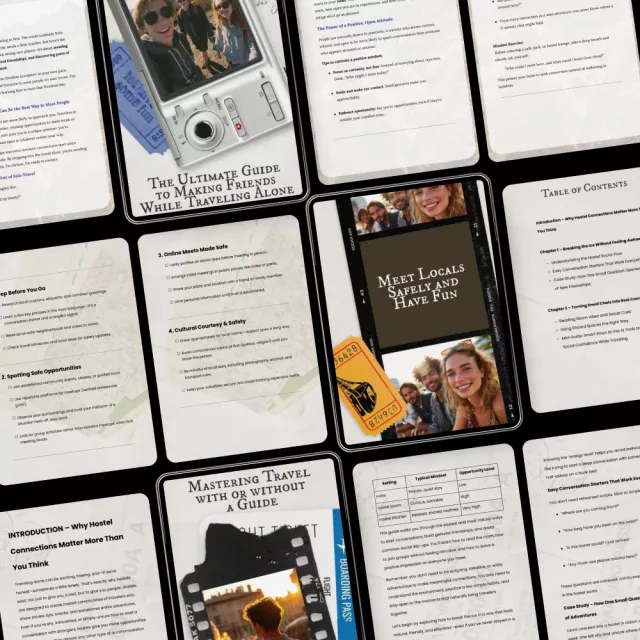 This 5-in-1 bundle is your ultimate companion for making friends and connecting with others while exploring the world. With practical advice and expert guidance, you’ll learn how to break the ice, navigate cultural differences, and build lasting friendships—whether you’re in a bustling city or a remote village. Let these resources be your trusted companion on your next solo journey!