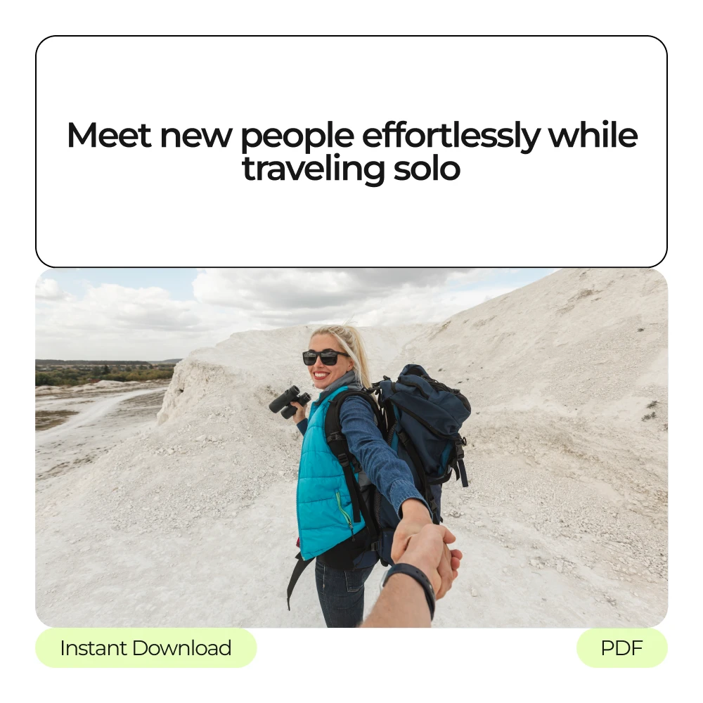 This digital product is ideal for solo travelers who want to make the most of their experiences by meeting new people along the way. Whether you’re an introvert looking for low-pressure ways to connect, or an extrovert seeking fun adventures with like-minded travelers, these resources are tailored to help you feel confident and empowered during your solo trips.