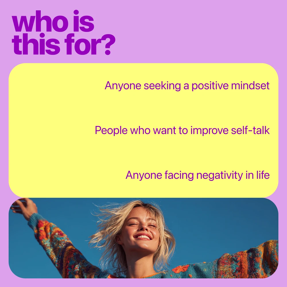 This bundle is perfect for anyone who wants to keep a positive attitude and make lasting changes to their mental well-being. Whether you’re struggling with negativity, want to feel more in control of your thoughts, or just want to cultivate more happiness in your life, this bundle has you covered. It’s ideal for individuals, coaches, or even business owners looking to enhance their mindset and encourage positivity in their teams.