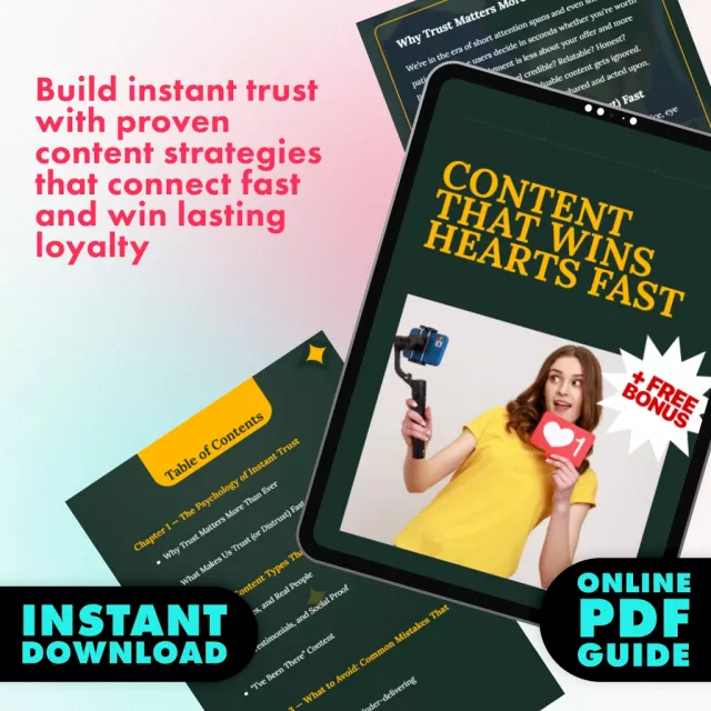 Want to connect with your audience in seconds and turn casual scrollers into loyal fans? Content That Wins Hearts Fast is your ultimate digital guide to creating content that builds trust fast. Whether you’re a coach, small business owner, or content creator, this resource shows you exactly how to craft posts, guides, and stories that instantly resonate, inspire confidence, and spark lasting relationships. In a world overflowing with polished but forgettable content, this guide helps you cut through the noise with authenticity and strategies that actually work.