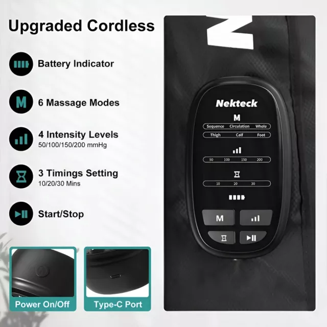 • Customizable compression levels for a tailored massage experience
