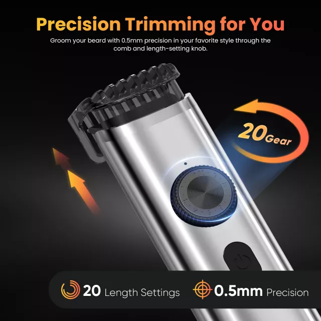 This hair clipper is equipped with stainless steel self-sharpening blades for long-lasting sharpness, ensuring smooth and precise cuts without pulling or snagging. The powerful low-noise motor makes grooming comfortable, even for kids and those sensitive to sound. With an impressive 20 precision length settings, you have complete control over your style—from close shaves to longer trims.