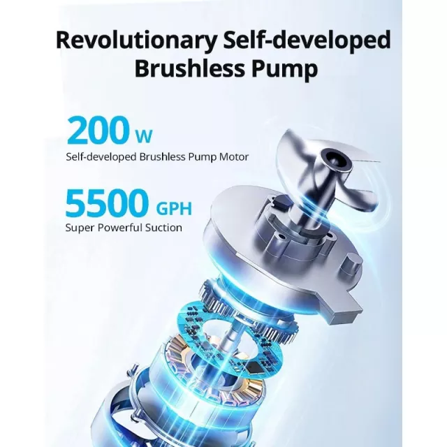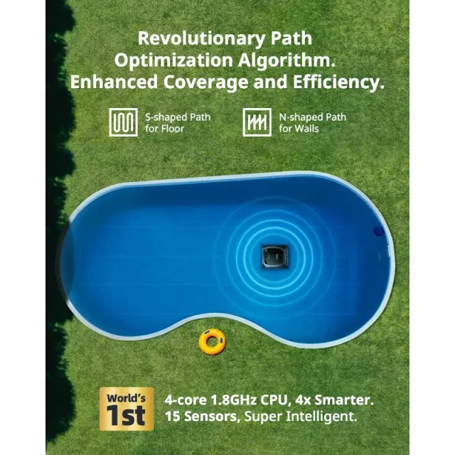 Thanks to its industry-leading quad-core 1.8GHz processor and 15 smart sensors, this vacuum maps out your pool and cleans in the most efficient pattern—choosing N-shape or S-shape paths depending on the layout. It’s not just smart, it’s powerful. With a high-performance 200W brushless pump motor, it delivers up to 5500 GPH of suction power to capture fine debris and dirt in its ultra-fine 150-micron filter basket.