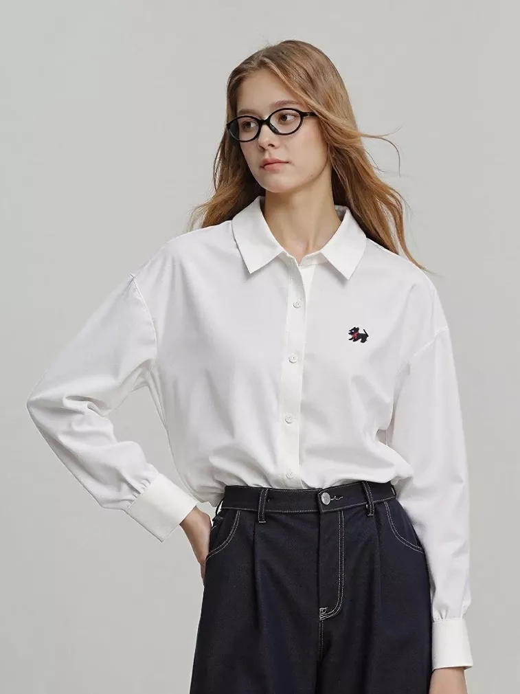 Step into the new season with a top that blends comfort, charm, and everyday practicality. This pure-cotton shirt brings together a sweet embroidered puppy motif with a classic polo-neck silhouette, giving you a look that is both playful and polished. Designed with a loose, relaxed fit and crafted from natural cotton fibers, it offers breathable comfort for all-day wear—perfect for workdays, weekends, and every moment in between.