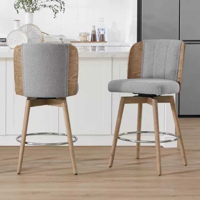 Counter Height Bar Stools Set of 2, 360° Swivel Upholstered with Back, Wood Legs