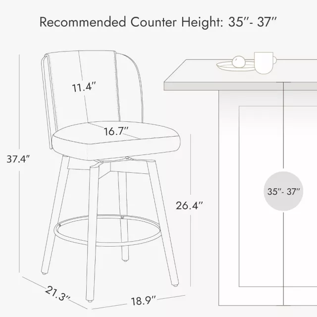 These counter height bar stools are more than just a functional addition to your space—they’re a statement piece. Whether you’re setting up a cozy home bar, upgrading your kitchen counter, or looking for extra seating for guests, these stools are the perfect choice. The versatile 360-degree swivel makes them great for quick, casual meals or relaxed social settings. Plus, the soft upholstery and durable construction ensure that you’ll enjoy them for years to come.