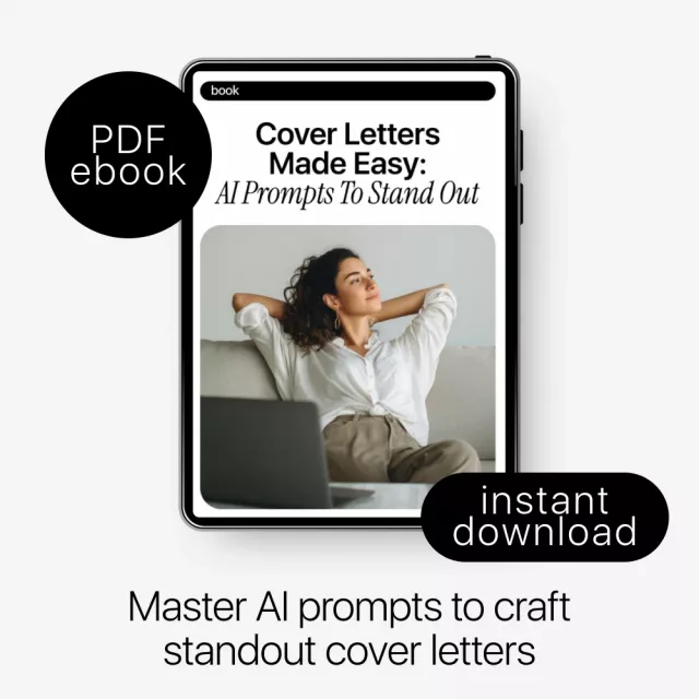 Struggling to make your cover letters stand out? Cover Letters Made Easy: AI Prompts to Stand Out is your ultimate digital guide to creating professional, tailored cover letters quickly and confidently. This easy-to-follow eBook shows you exactly how to harness AI for cover letter writing, making your application shine and grab recruiters’ attention. With practical prompts and step-by-step guidance, you’ll learn to craft letters that highlight your experience, skills, and personality without sounding generic.