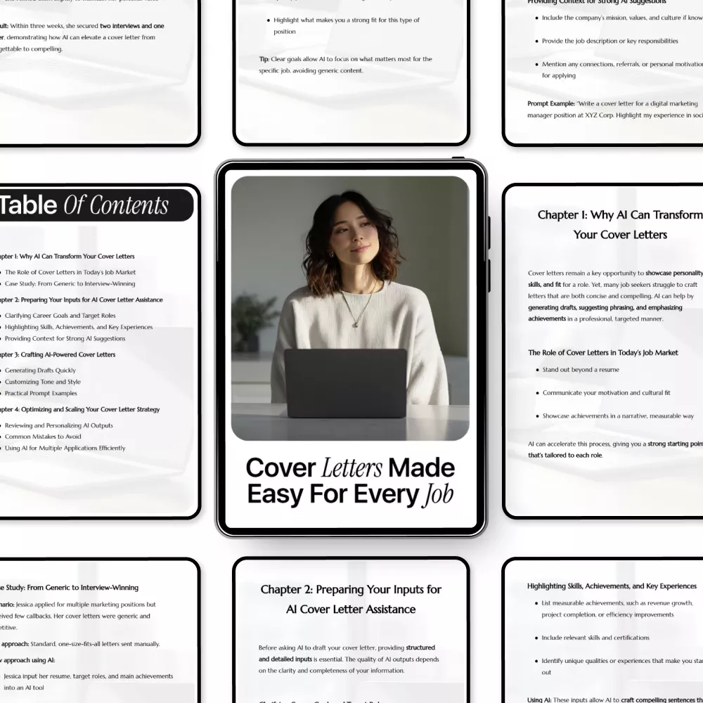 Unlike other generic templates or static eBooks, Cover Letters Made Easy for Every Job teaches you how to actively use AI to craft personalized, dynamic, and professional cover letters. With actionable tips, clear examples, and a structured approach, it ensures you not only write letters faster but also smarter.