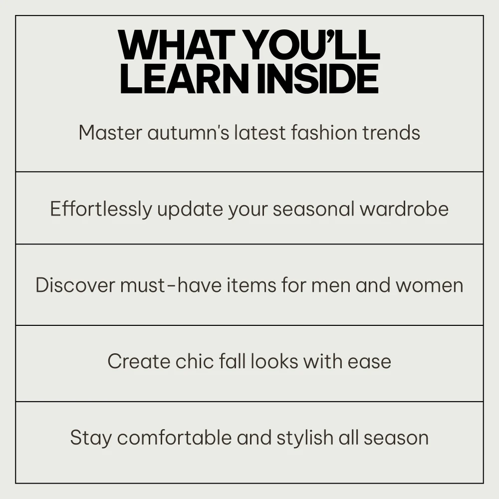 this 3-in-1 bundle has been my go-to guide for all things fall fashion. it's packed with practical checklists that make sure you have everything you need for the season - no more forgetting important pieces or last-minute shopping sprees! Also, I can now confidently dress up for any occasion, be it casual weekends or stylish nights out thanks to their expert advice